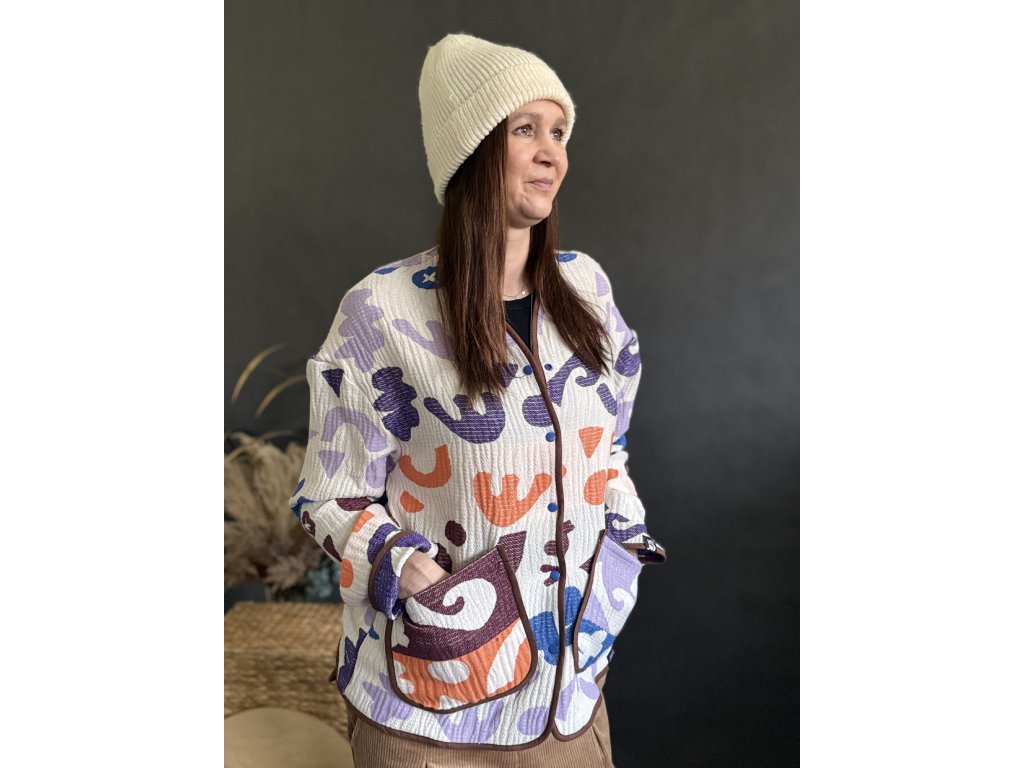 Kabátek SHELBY je výjimečný a nepřehlédnutelný model, který si zamilují ženy, jež milují originalitu a autorský styl. Na první pohled zaujme výrazným vzorem, propracovanými detaily a jedinečným střihem, který krásně sedí a zároveň působí uvolněně.