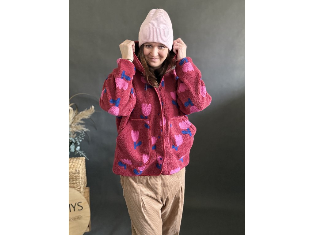 Originální dámský kabátek z hřejivého TEDDY materiálu s hravým tulipánovým vzorem, který na první pohled zaujme. Měkký „beránkový“ povrch je příjemný na dotek, krásně zahřeje a dodává kabátku útulný, ale zároveň stylový vzhled.