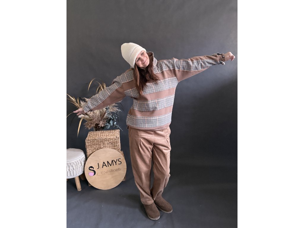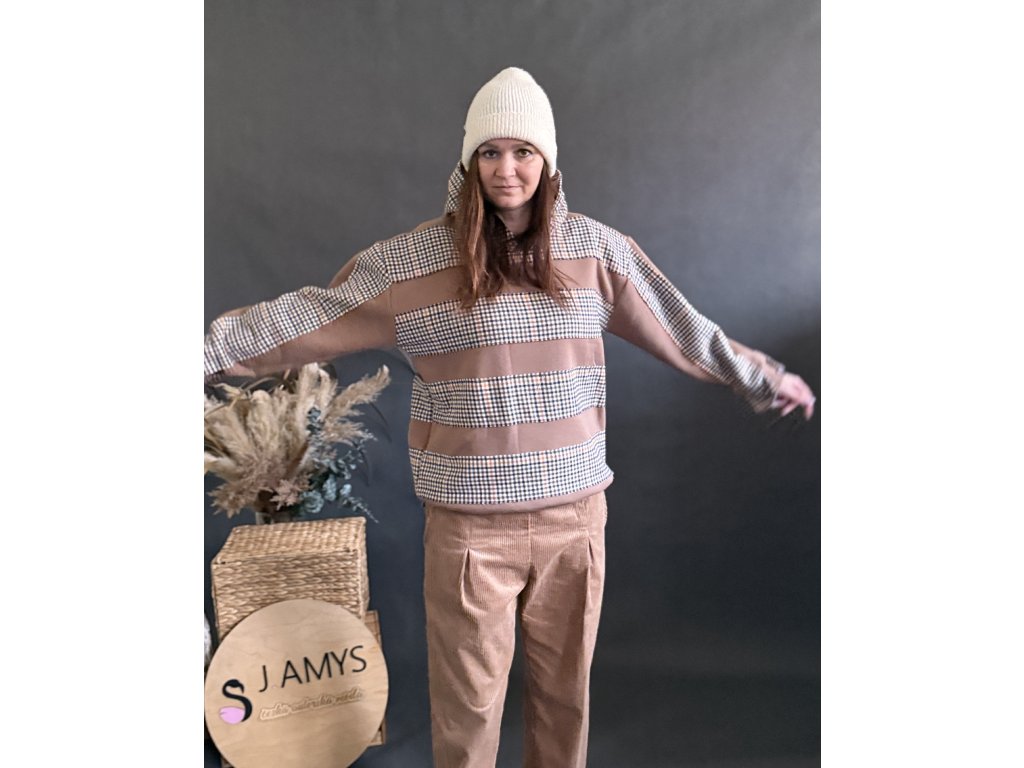 Mega elegantní a stylová oversize mikina PUMP STYLE v originálním hnědém grafickém vzoru. Výrazné horizontální pruhy v kombinaci s jemnou strukturou látky vytvářejí moderní a designový look, který zaujme na první pohled.
