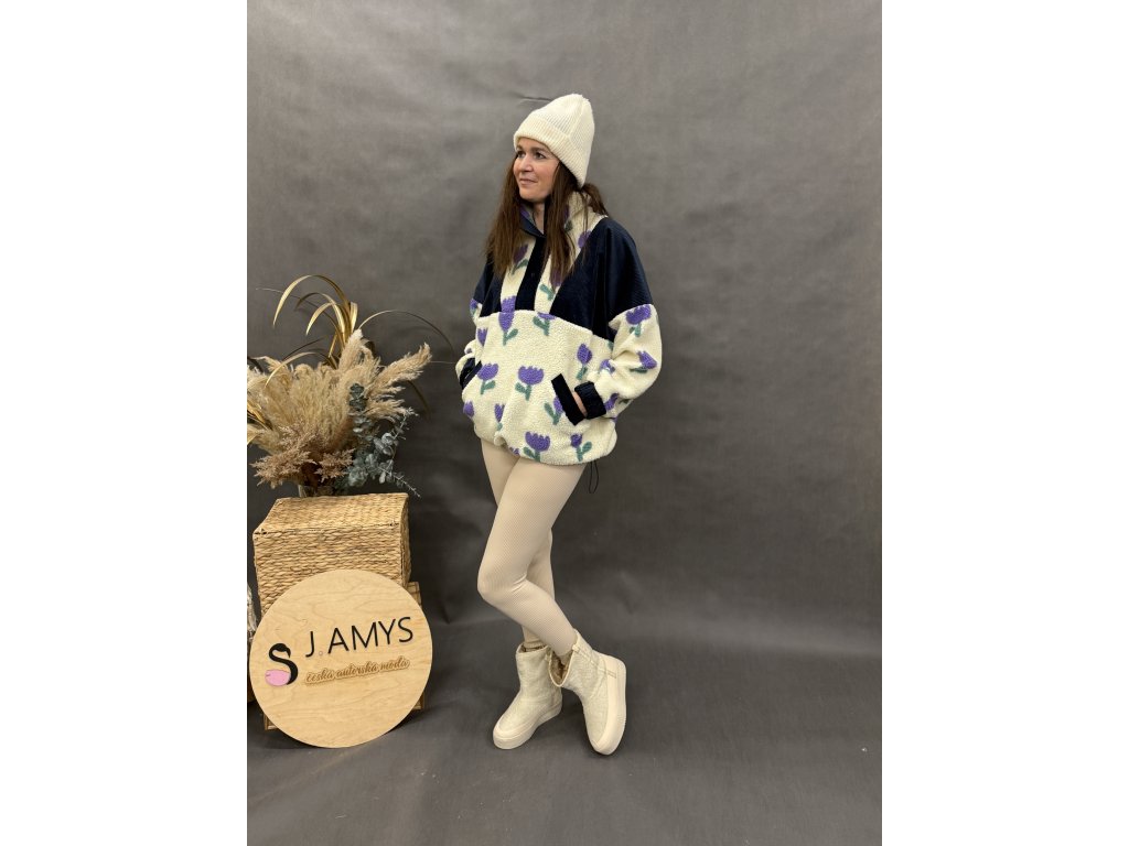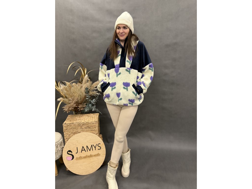 Hřejivá oversize TEDDY mikina s kapucí a originálním tulipánovým vzorem je ideální volbou pro chladnější dny. Díky měkkému beránkovému teddymu je extrémně pohodlná na nošení a zároveň stylová. Volný střih s extra širokými rukávy vytváří moderní siluetu a zaručuje maximální komfort.