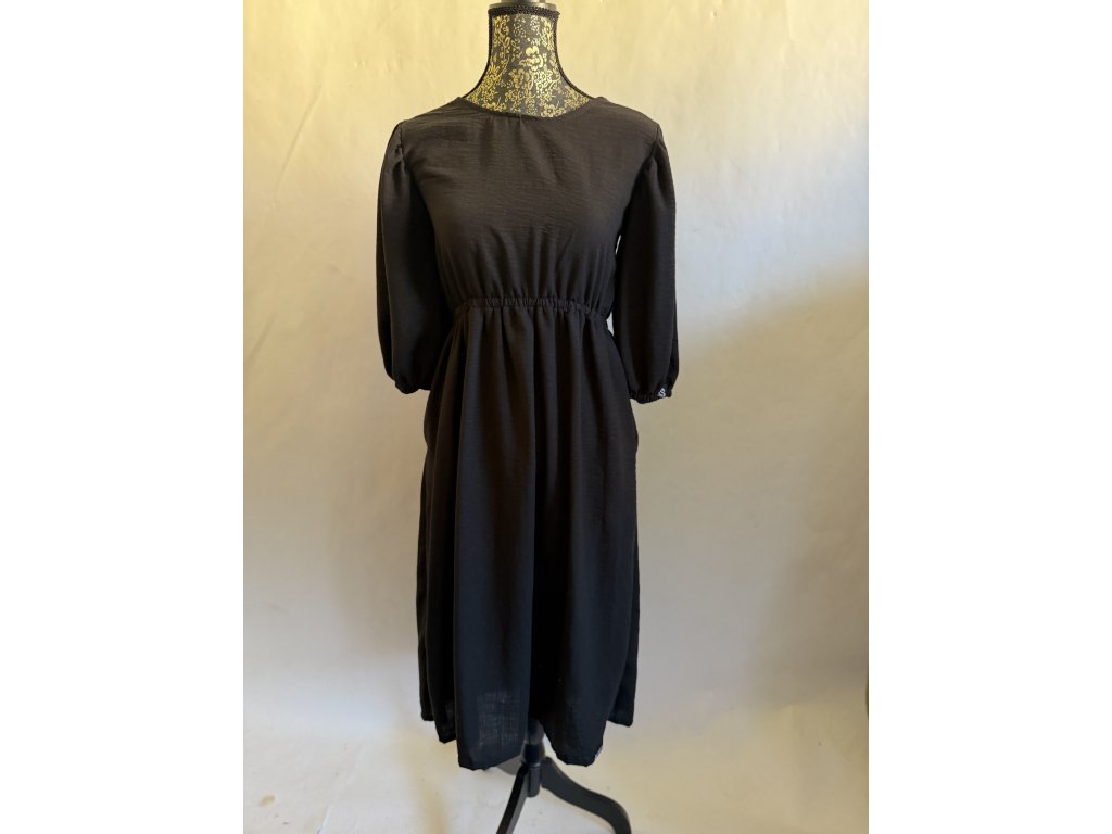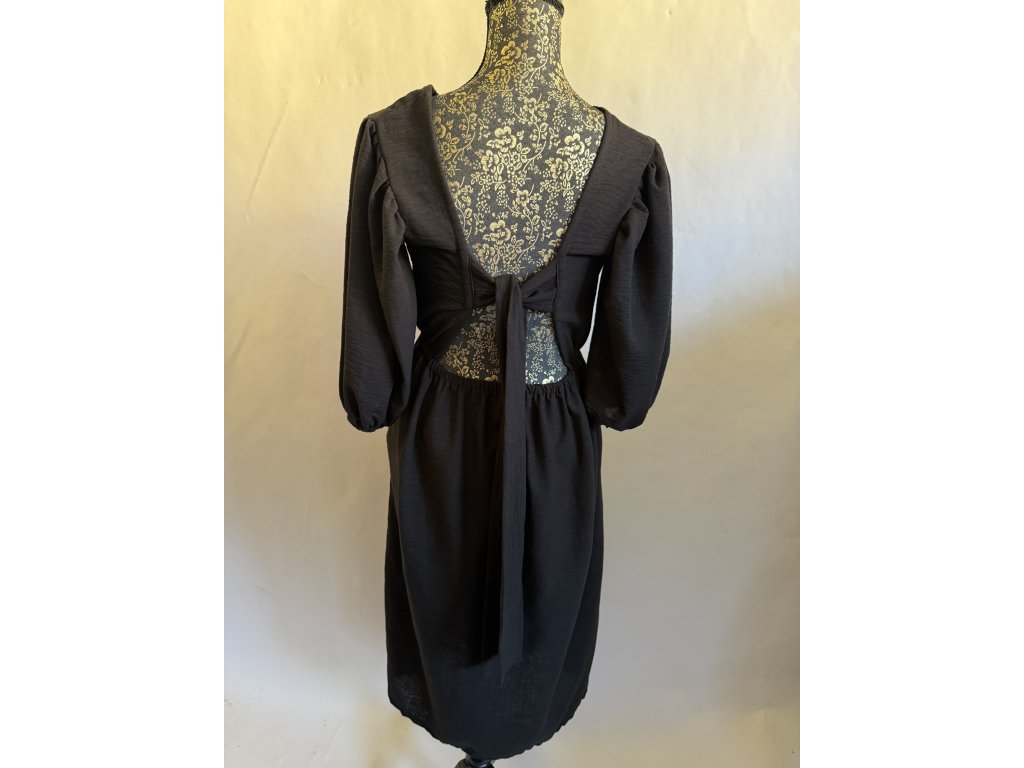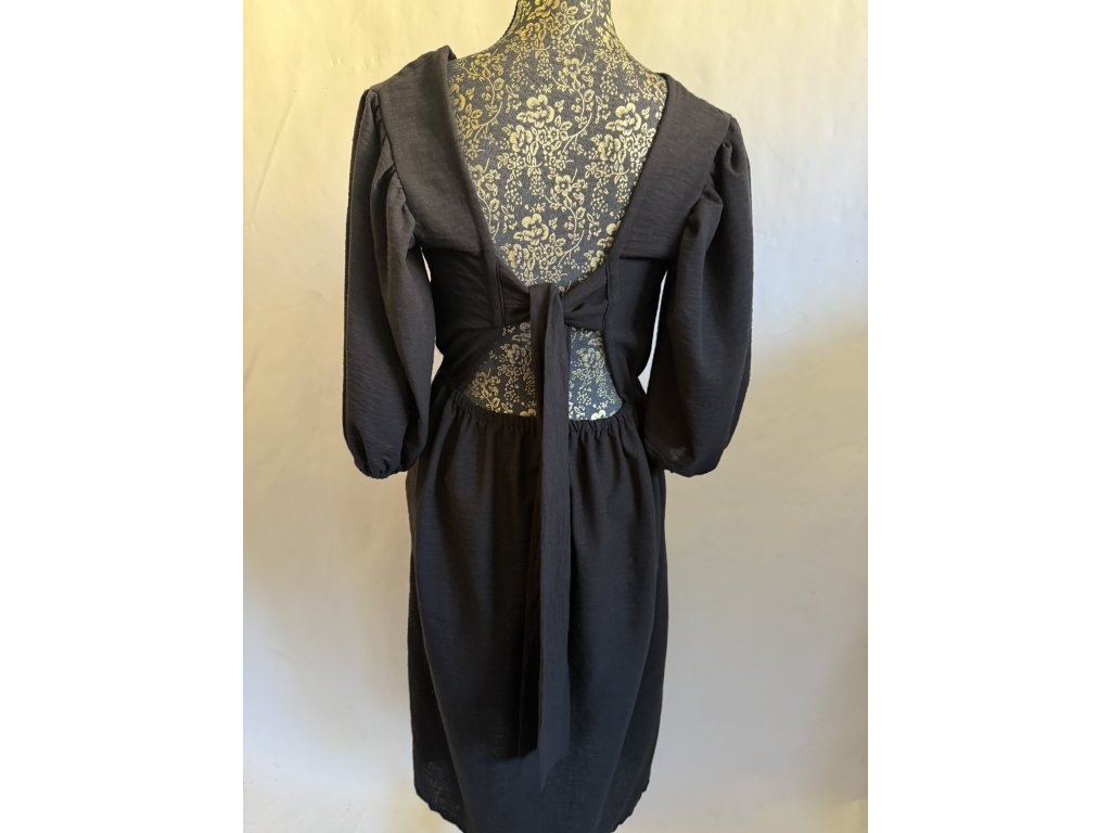 Nádherné a sexy šaty s 3/4 rukávem do gumy a vzadu jsou volná záda na zavazování v barvě černý len vintago.