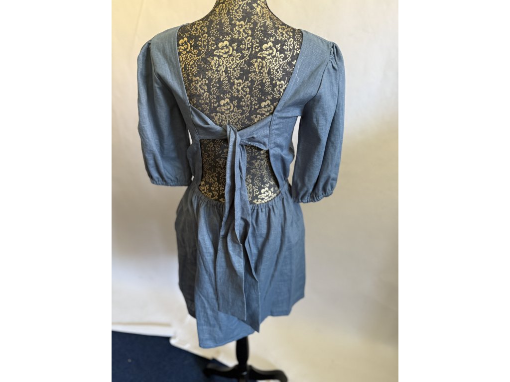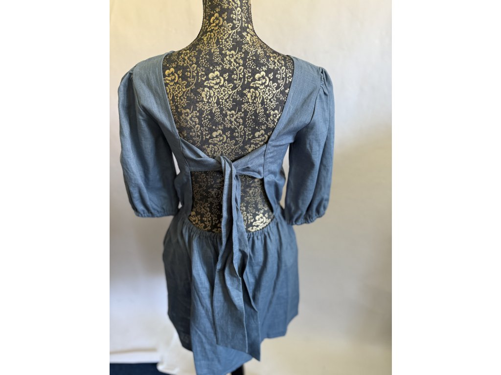 Překrásné a sexy šaty se zavazováním vzadu na zádech, ty prostě musíš mít. Z nádherného modrého lnu.