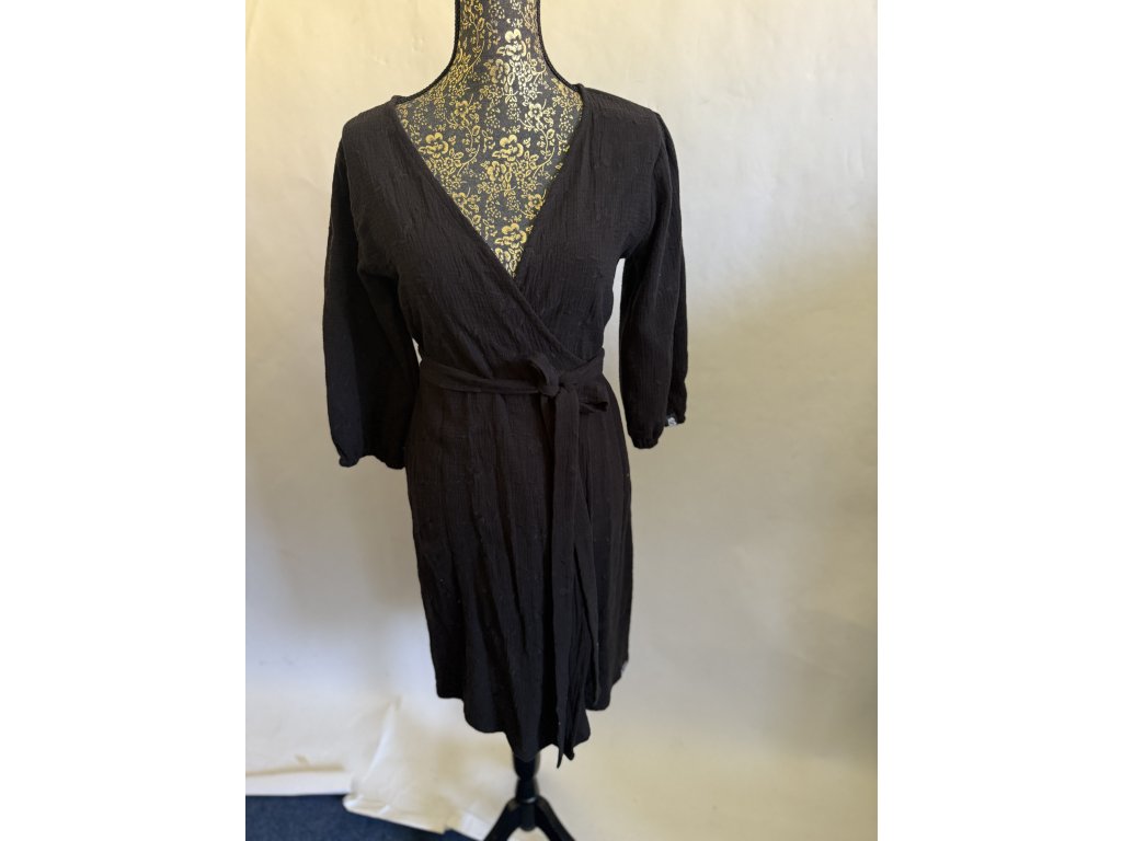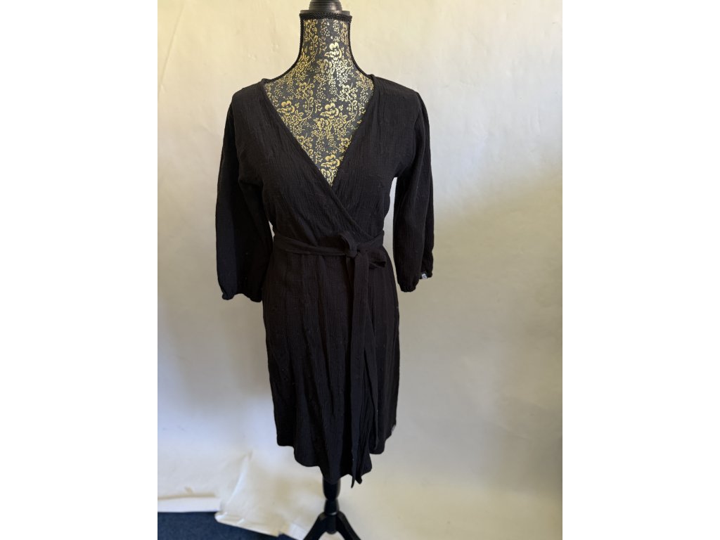 Nádhený černý vyšívaný mušelín a tyto zavinovací šaty si zamilujete s 3/4 rukávem do gumy.