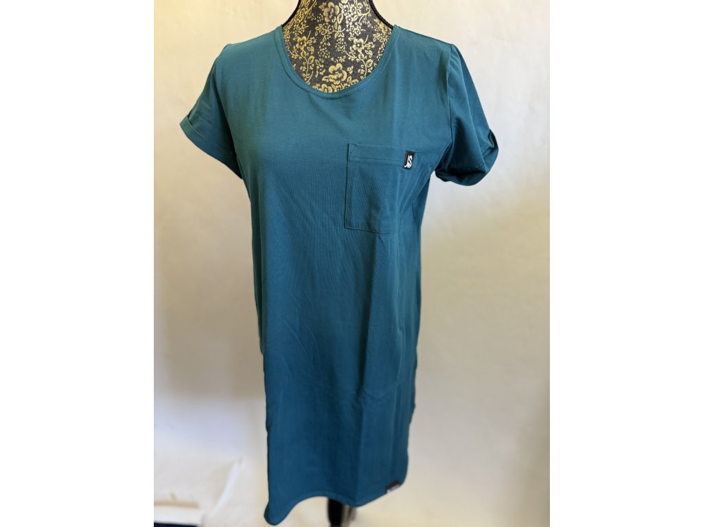 Nádherné úpletové šatičky v barvě Petrol s kapsičkou a rozparky po stranách se zipky na kojení.