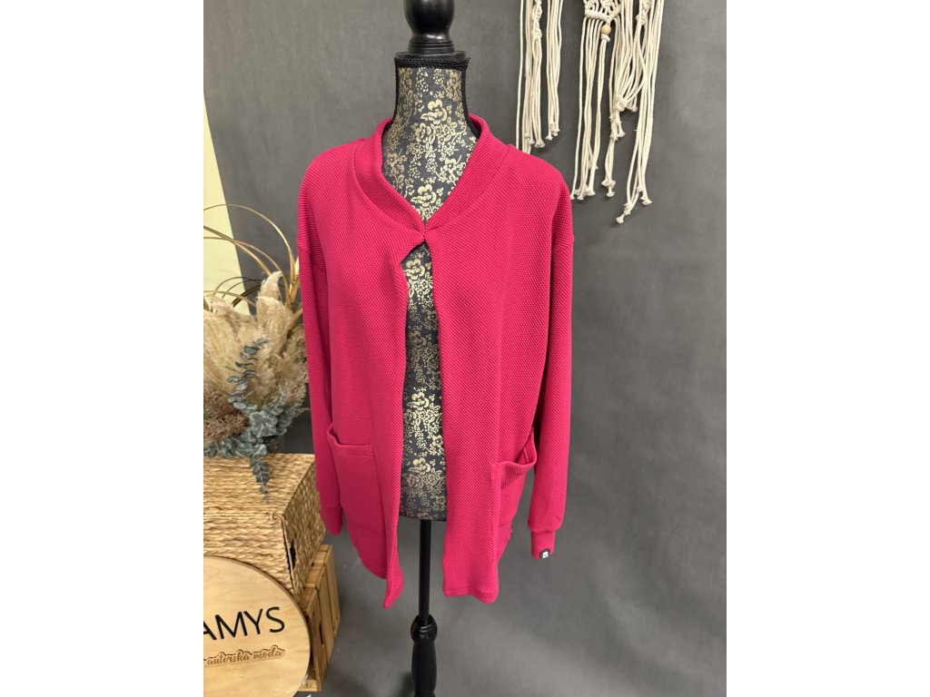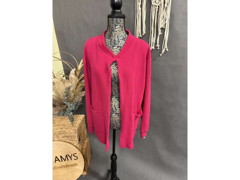 Velmi příjemný kabátek z 3D teplákoviny v barvě malina a lilla. Sedí na jakoukoliv velikost.