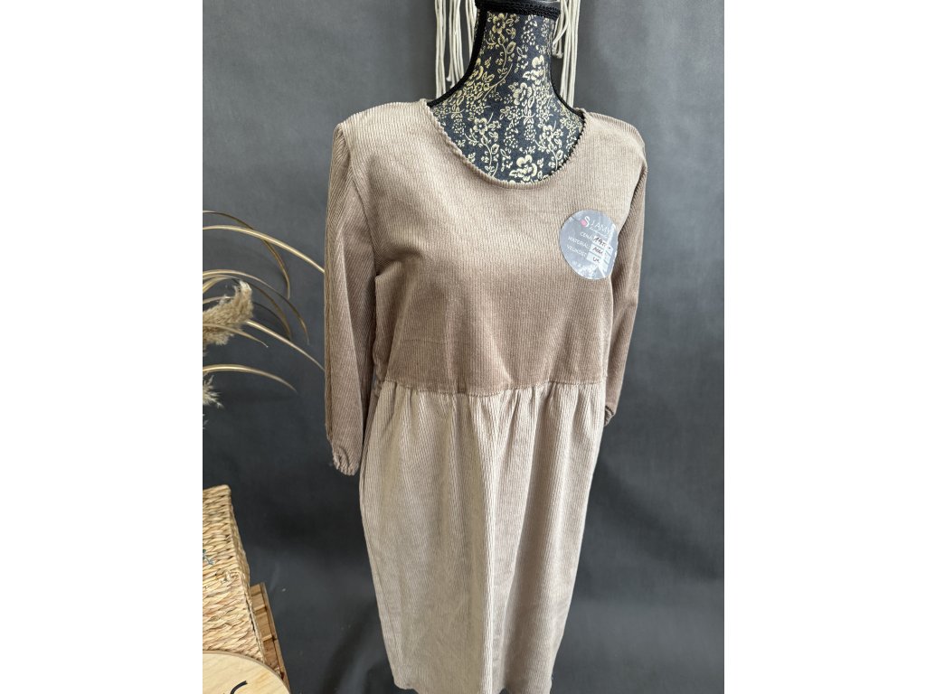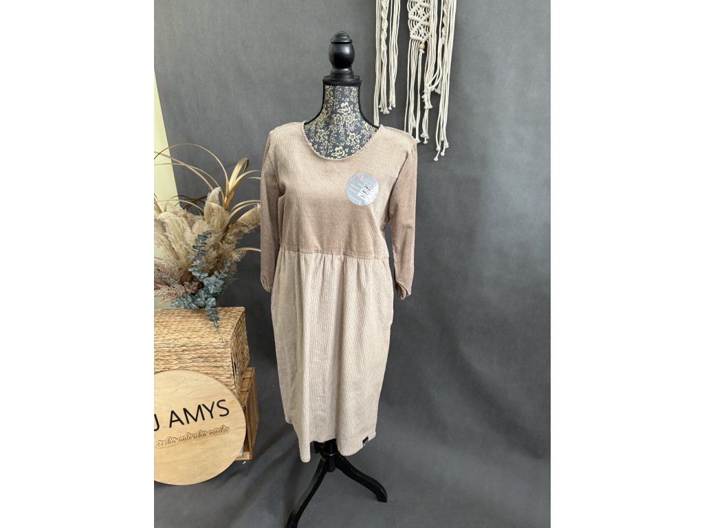 krásné manšestrové šaty s kapsami v barvě přírodní hnědé. Mají kapsy po stranách. A jdou dodělat zipy na kojení.