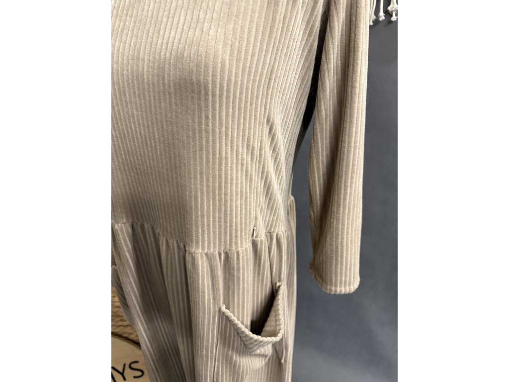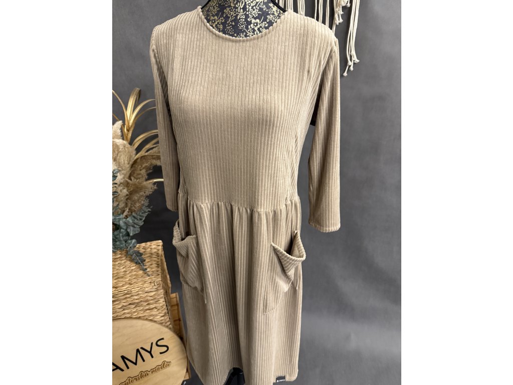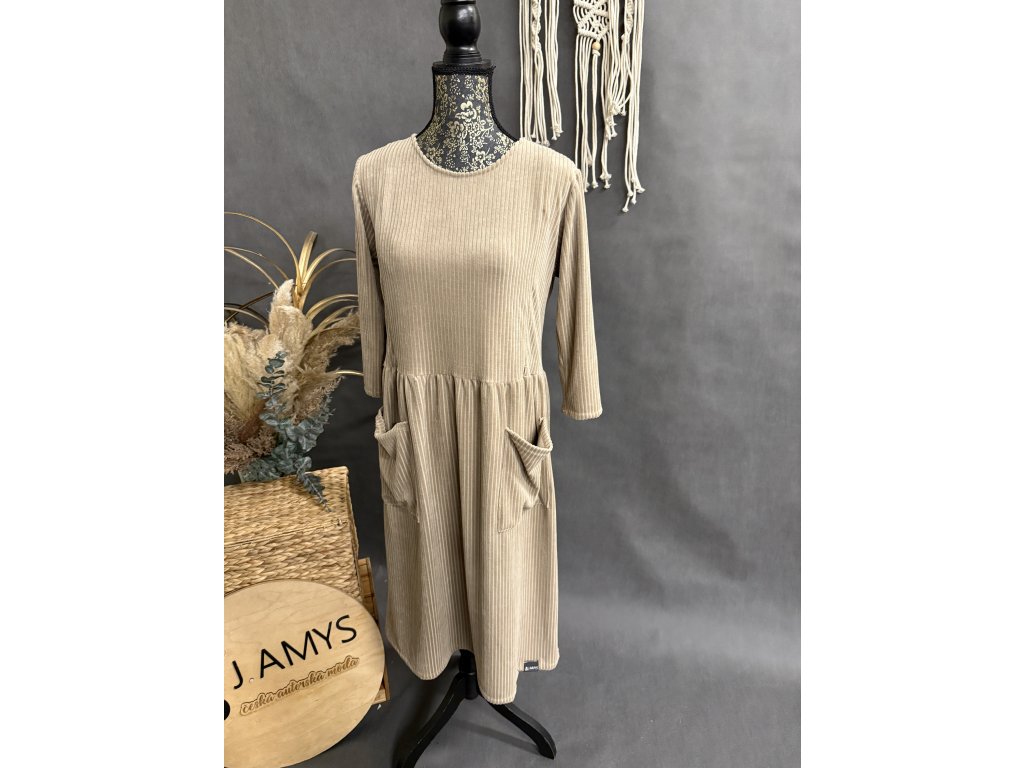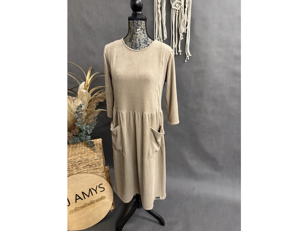 Elegantní šaty z jemného manšestru v barvě béžové s 3/4 rukávem klasik a kapsami, kojící.