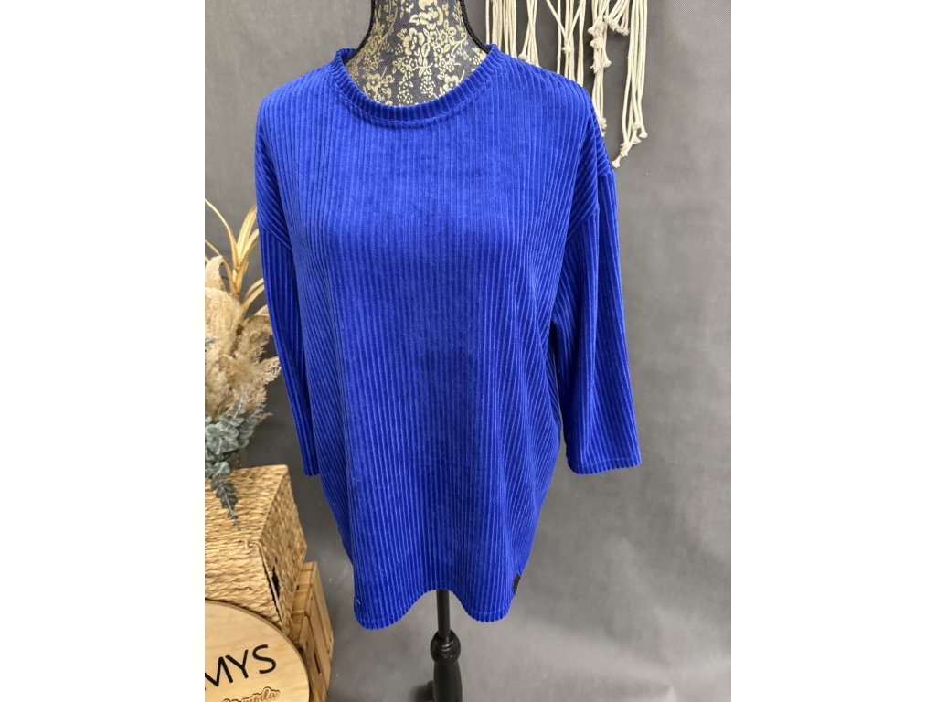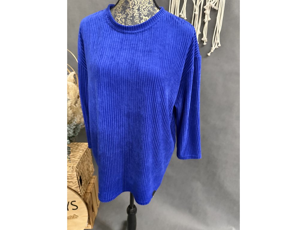 manšestrové triko v královské modré barvě, volného střihu spadlým rukávem. Jde udělat i kojící.