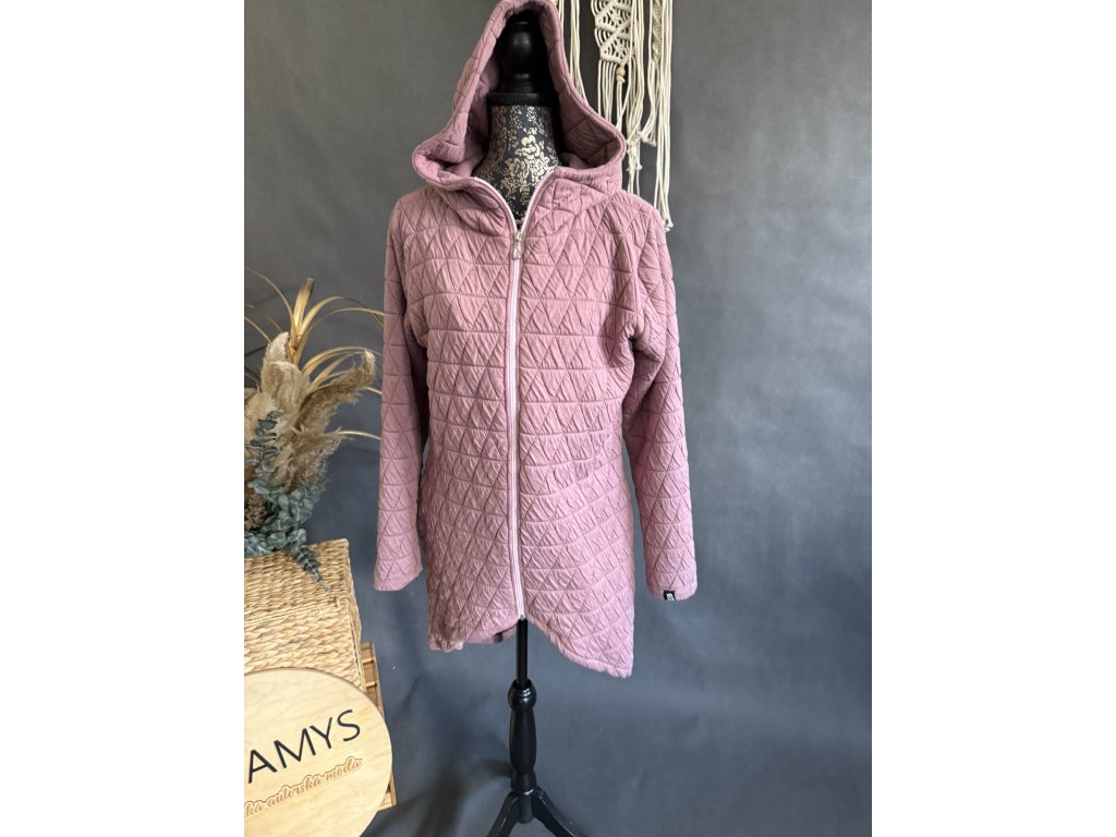 Příjemná mikina na zip z proševu v barvě starorůžová. Mikina je dlouhým rukávem a kapsami.