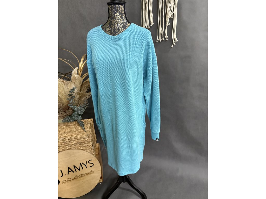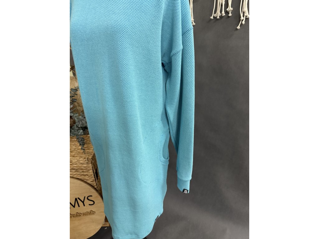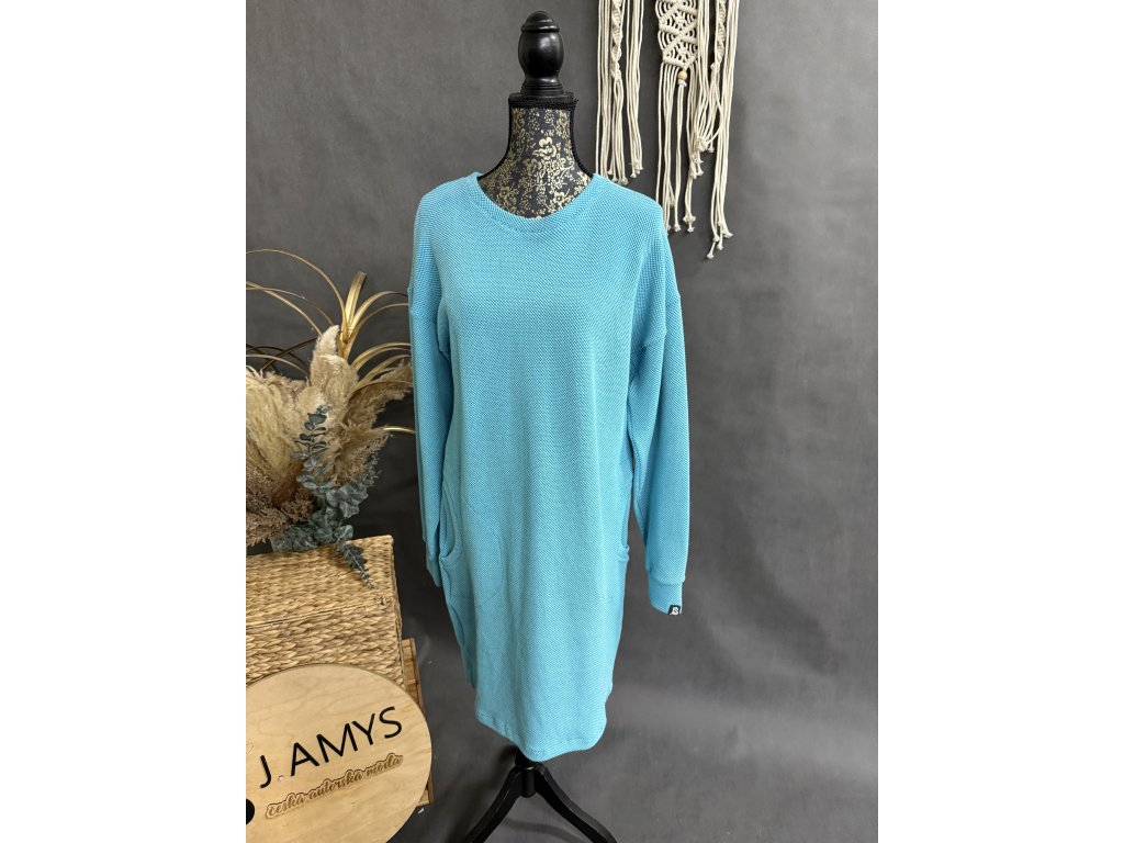 Elegantní mikinošaty s dlouhým rukávem a kapsami. V barvě tyrkys. Jdou i jako kojící.