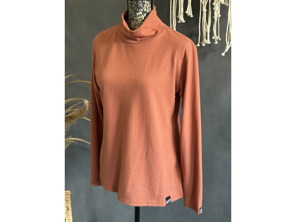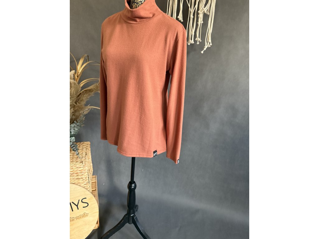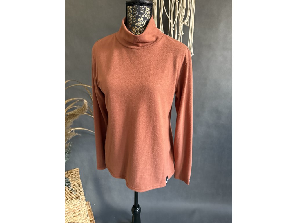 Elegantní rolák z jemné svetroviny v barvě cihla s dlouhým rukávem.