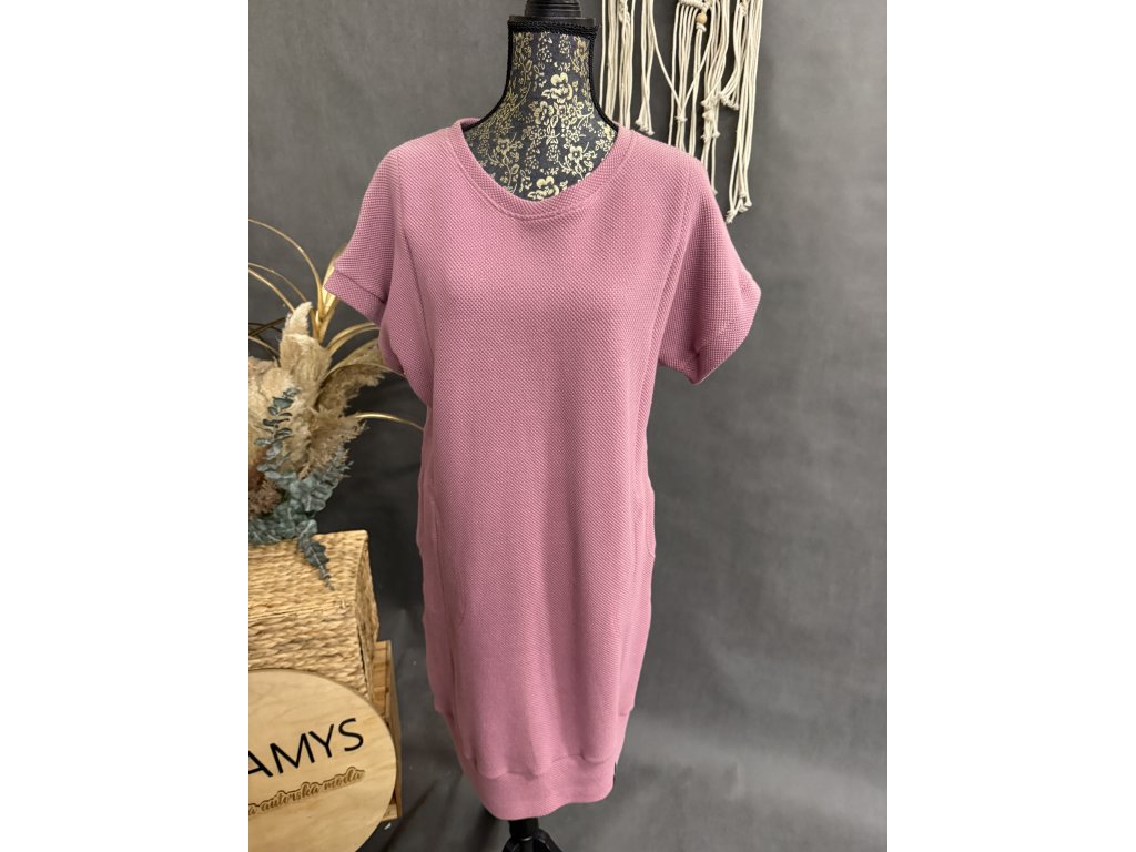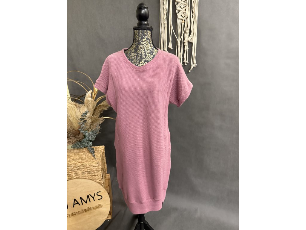 Krásné šaty s krátkým rukávem v barvě starorůžové a kojící. Velmi příjemný materiál.