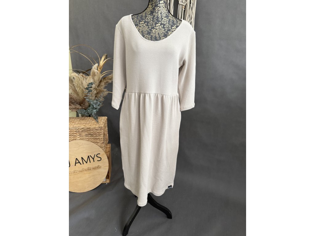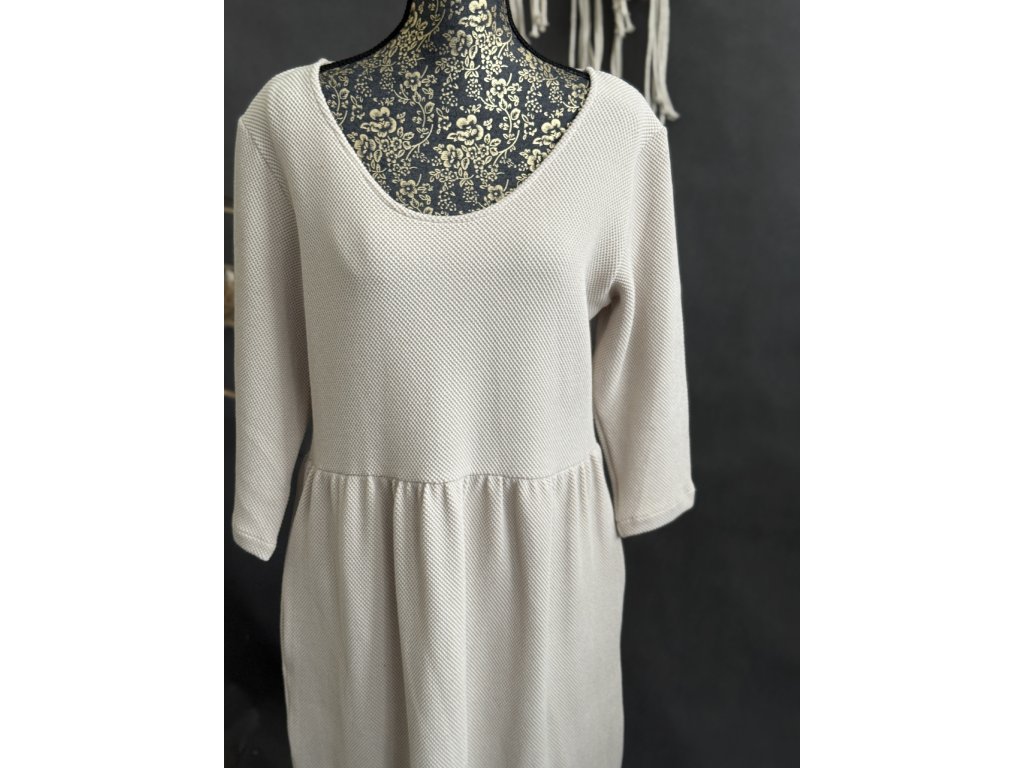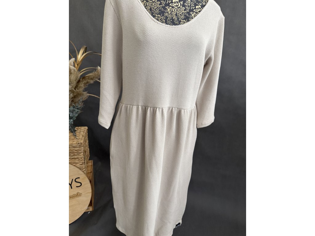 Úžasné a velmi pohodlné šaty z 3D teplákoviny v barvě béžové. Šaty mají i kapsy.