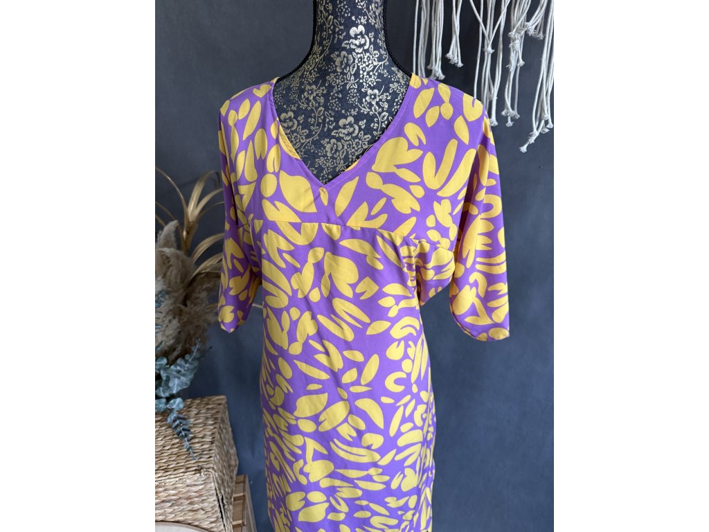 krásné vzorované šaty s rozparky na rukávech a zavazováním vzadu. Jsou naprosto úžasné, lehké a vzdušné.