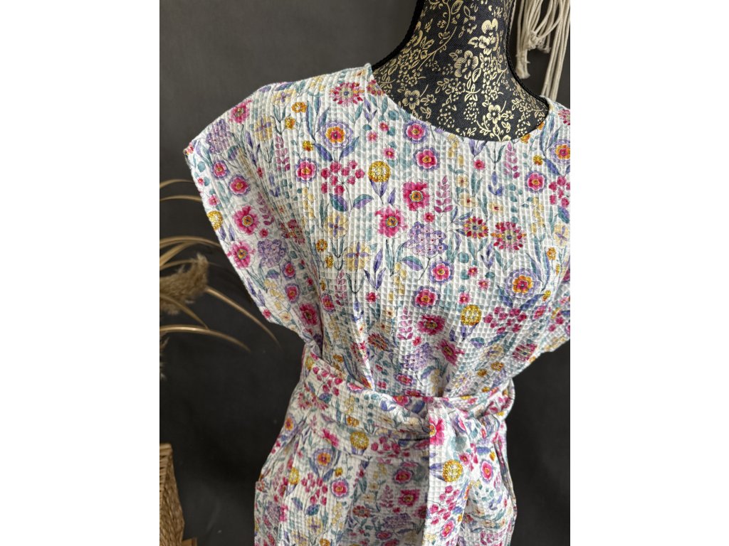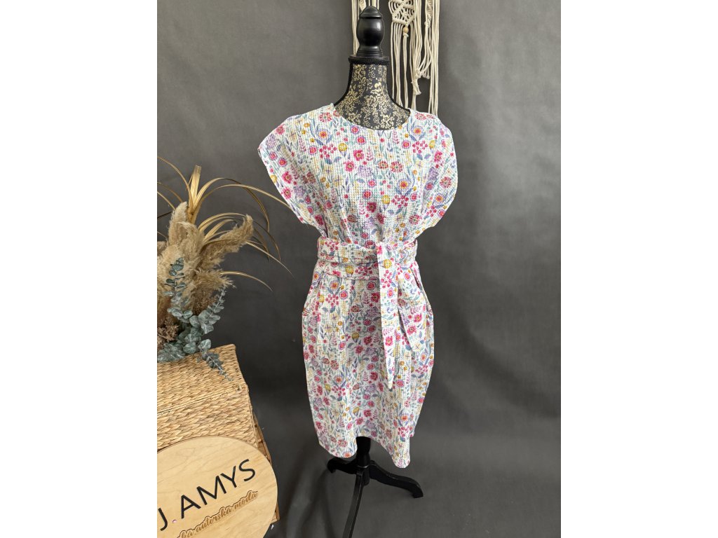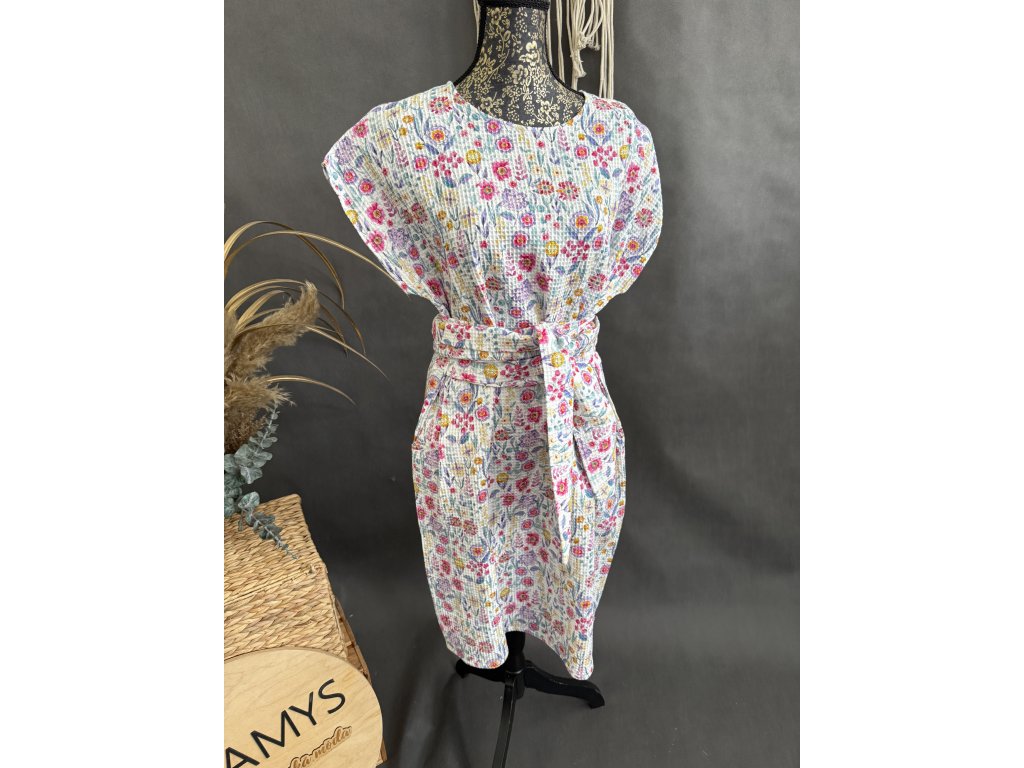 Elegantní šaty ze vzorované vafloviny. Tyto úžasné šaty sedí na jakoukoliv postavu, dají se stáhnout páskem a mají kapsy.