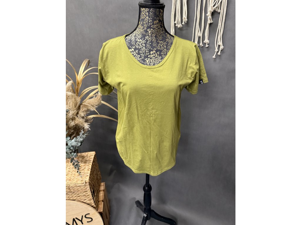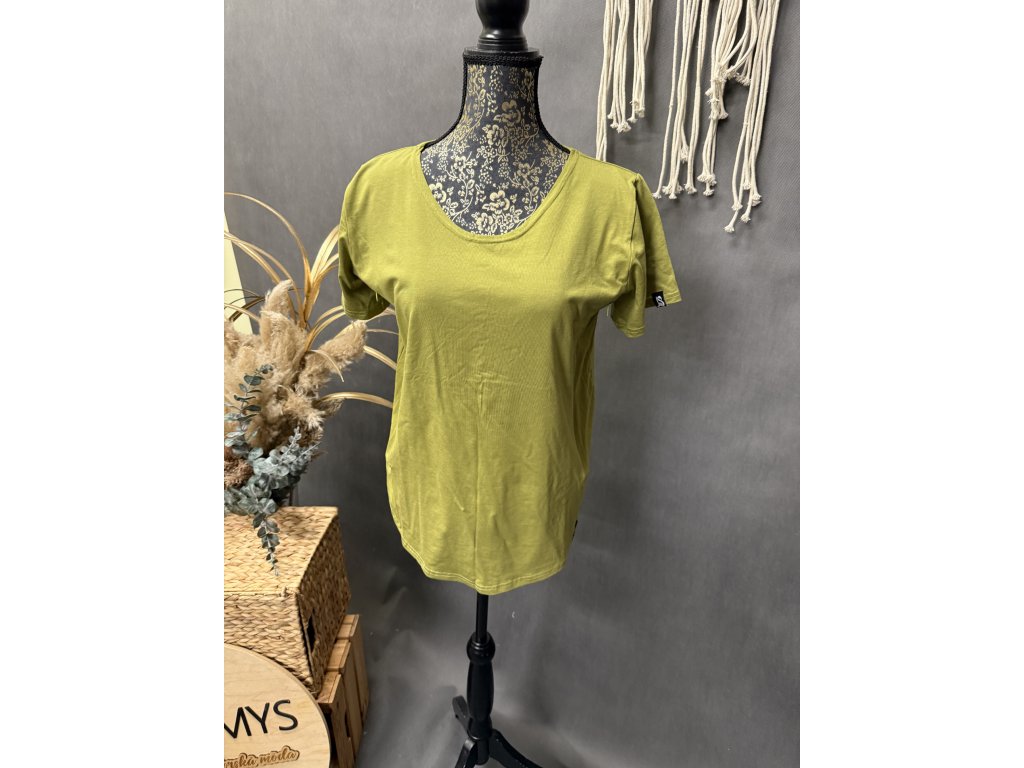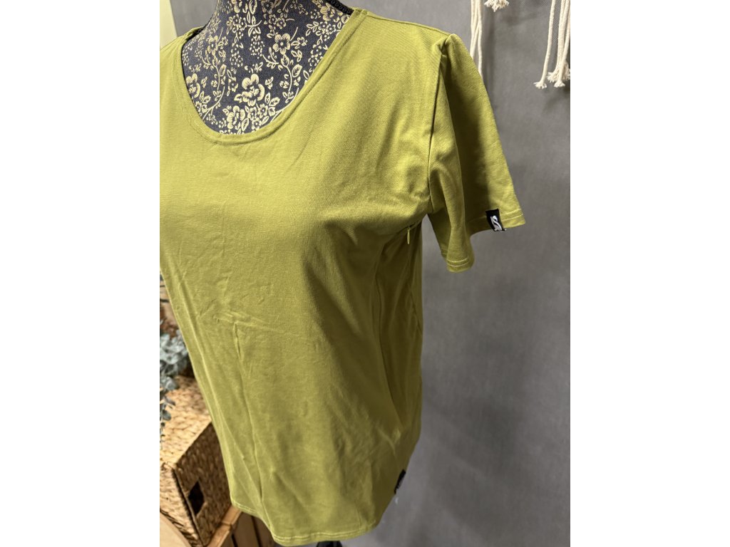 Elegantní triko s krátkým rukávem v barvě oliva z velmi příjemného materiálu. Triko je kojící.
