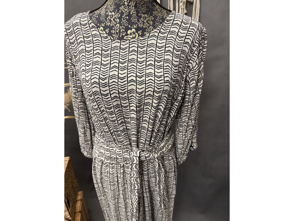 Nádherné lněné šaty s 3/4 rukávem a širokým páskem na zavázaní. Sedí jakékoliv postavě.