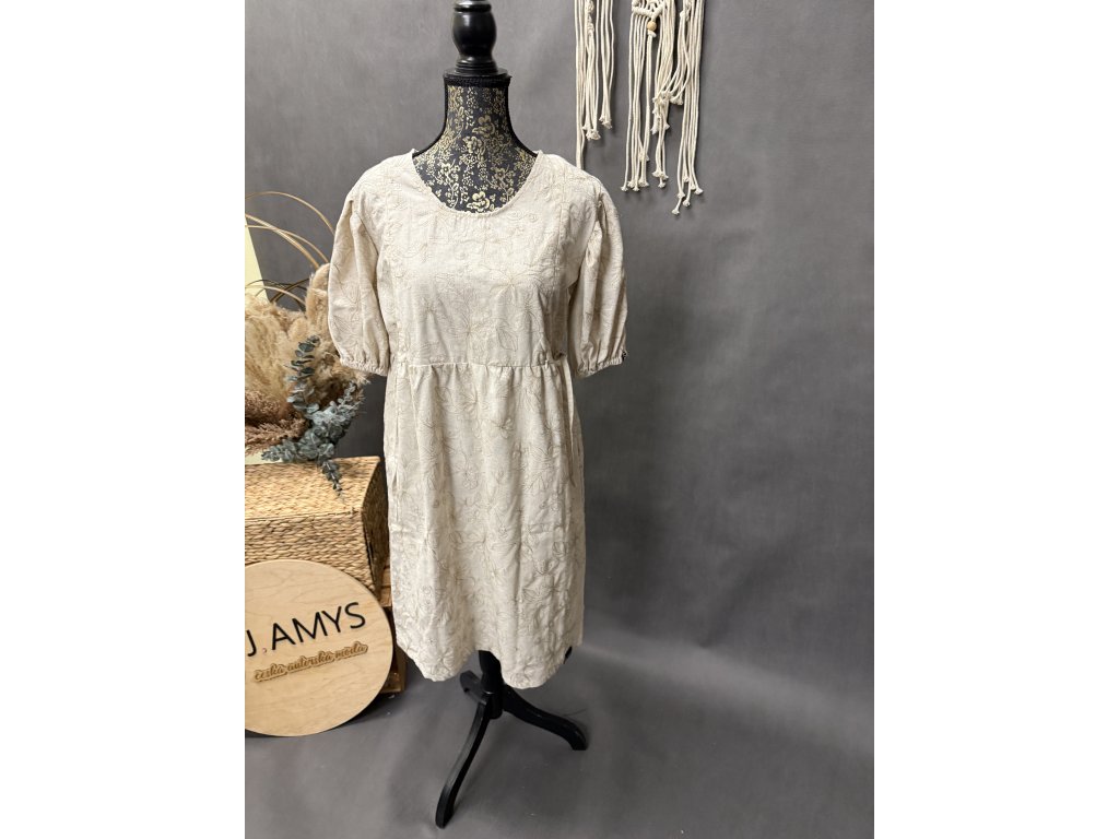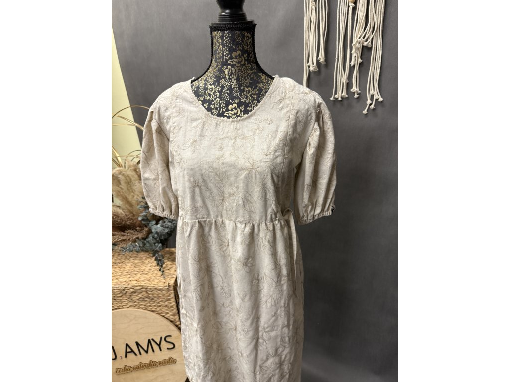 Nádherné lněné šaty s 3/4 rukávem dají se pod prsy stáhnout šňurkou. Jsou kojící.