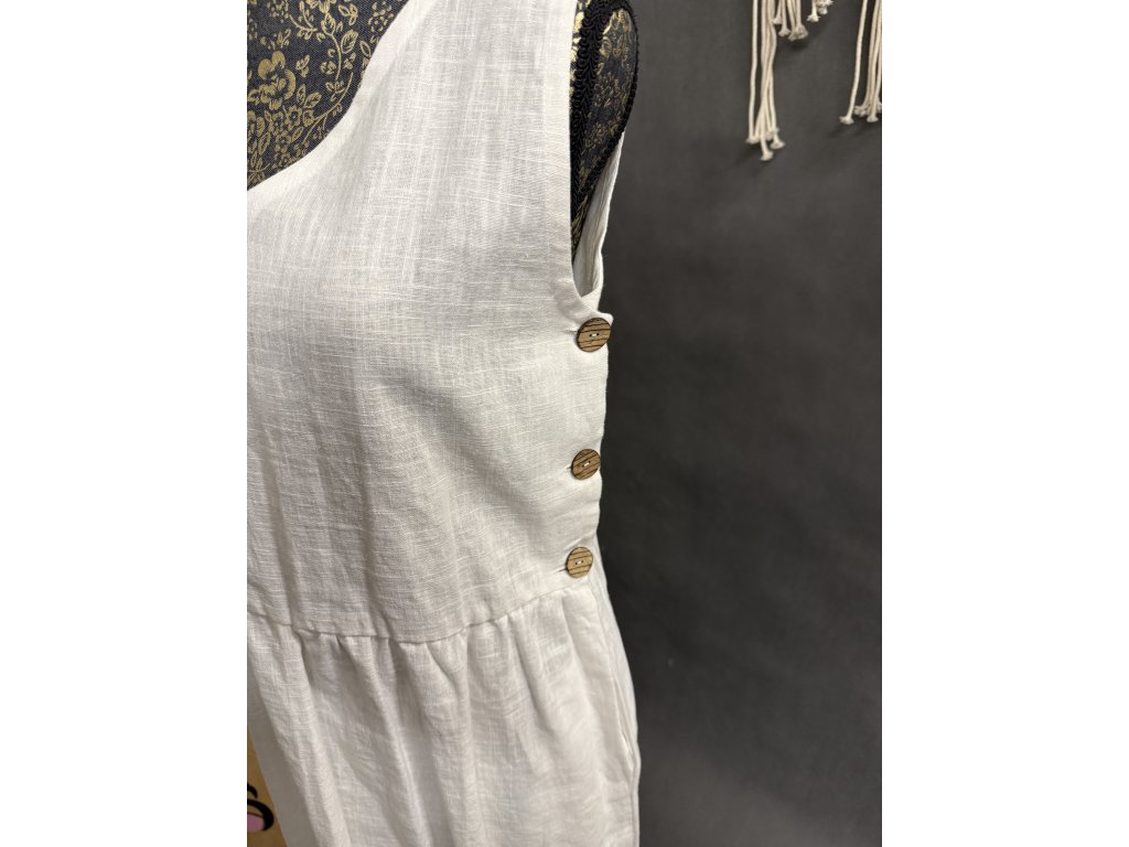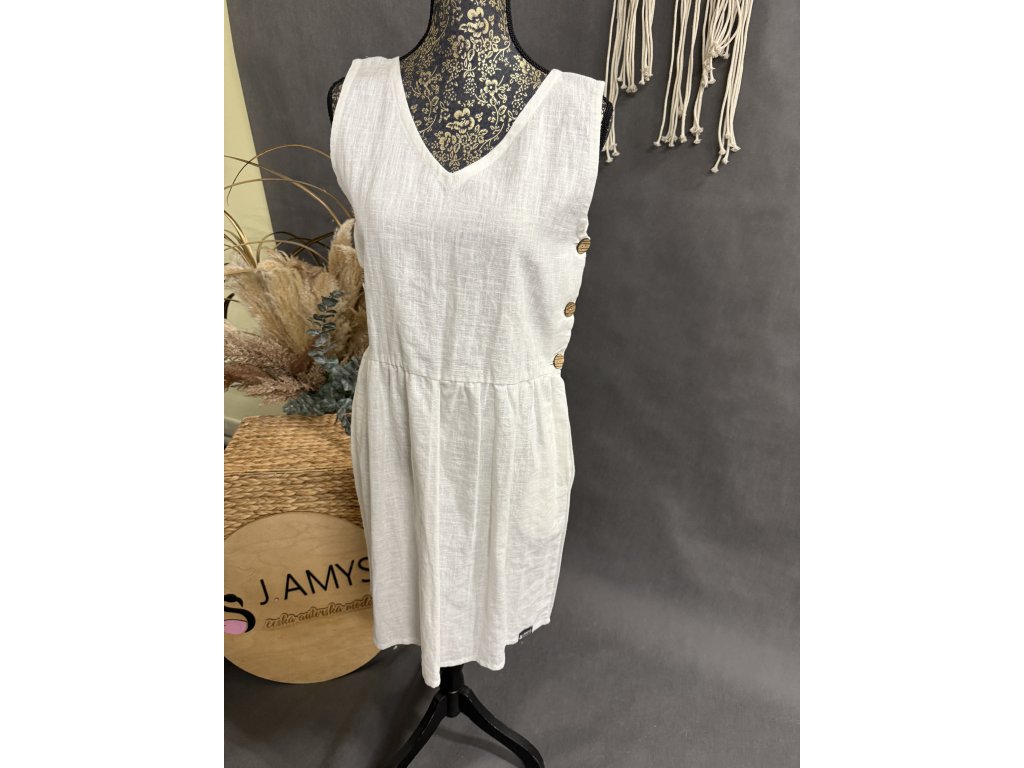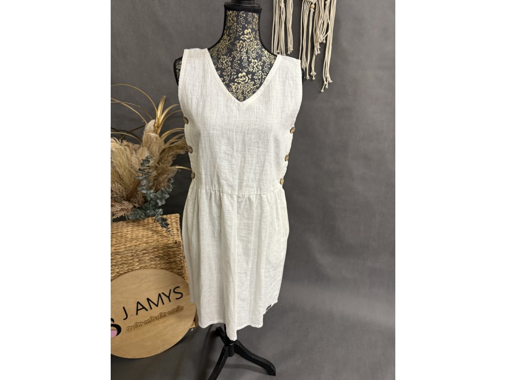 Krásné lněné Bílé šaty s knoflíky po stranách.