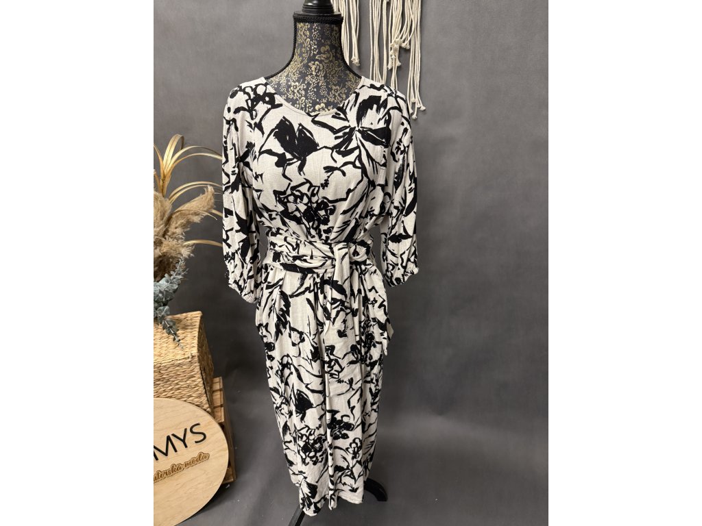 Nádherné lněné šaty s širokým páskem na zavazování a kapsami po stranách. Zipy na kojení.