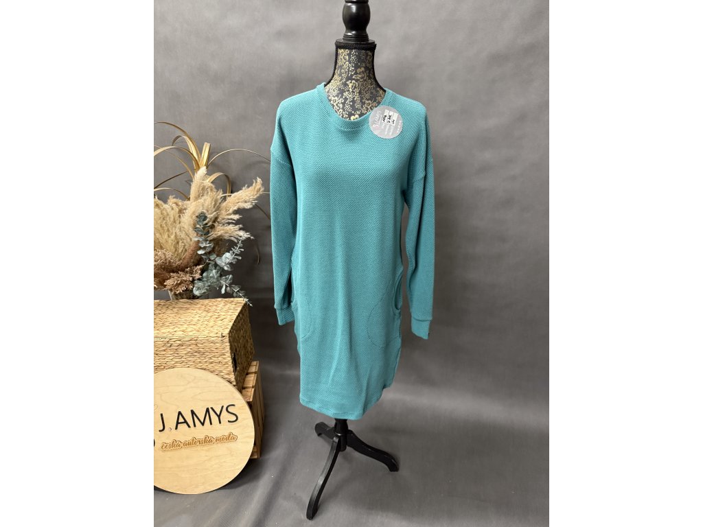 Elegantní mikinošaty s dlouhým rukávem a kapsami. V barvě tyrkys. Jdou i jako kojící.