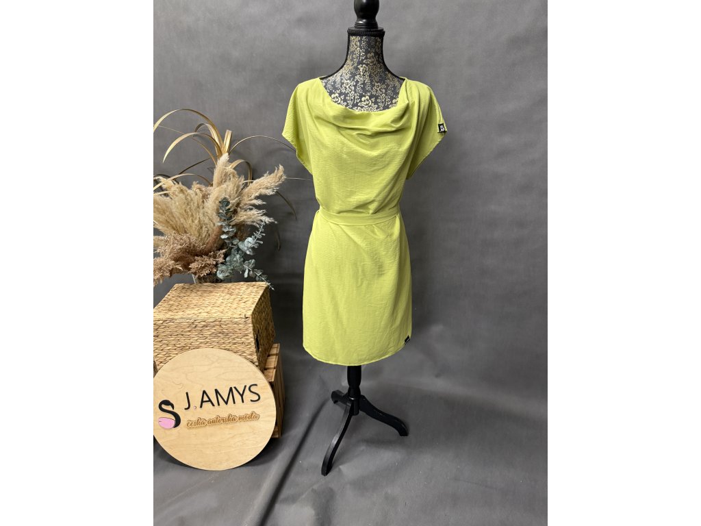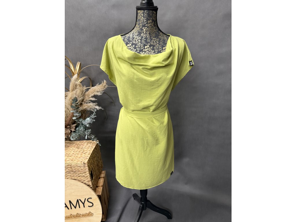 Krásné šaty v barvě zelené s páskem