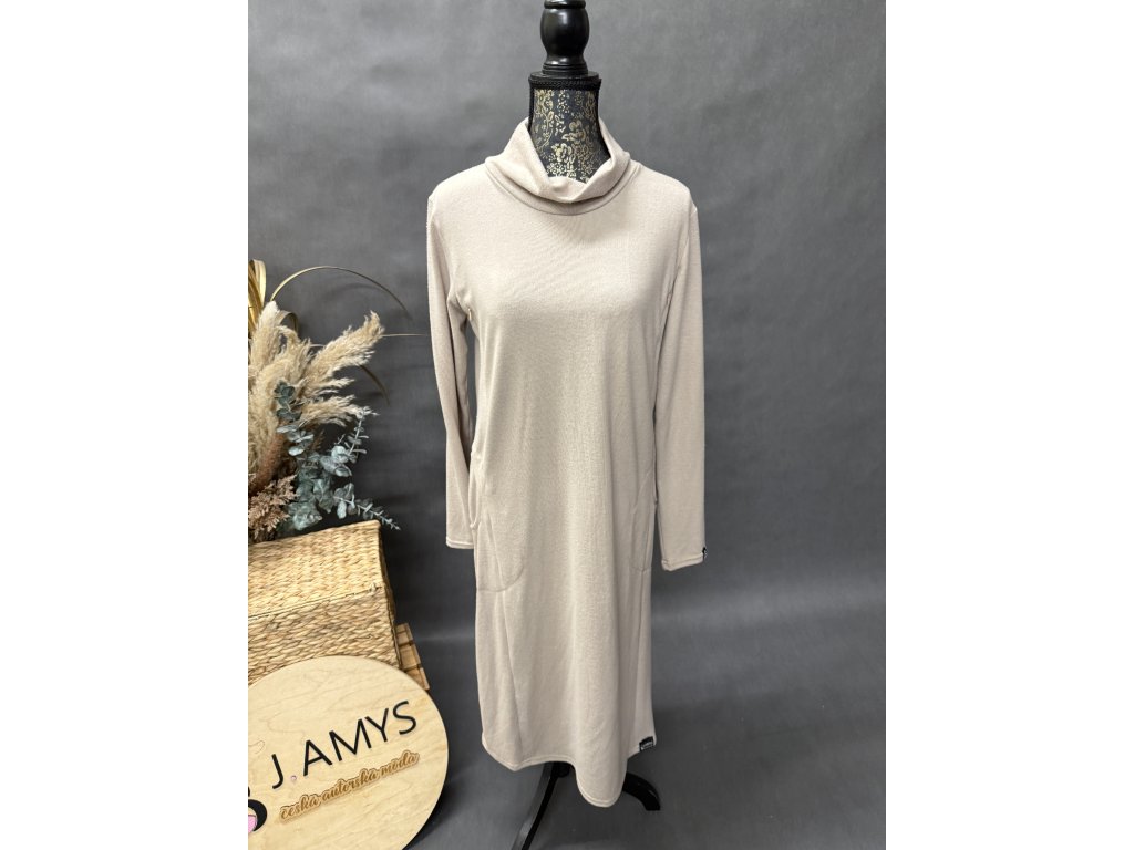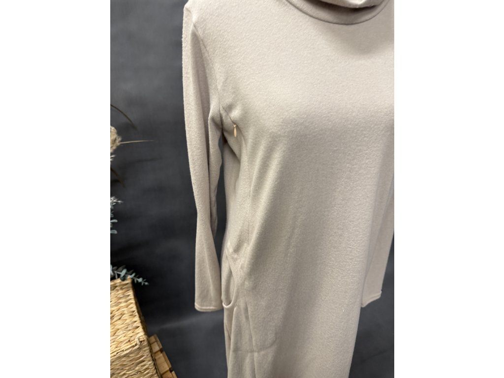 Elegantní dlouhé šaty z jemné svetroviny se skrytými zipy a kapsami v barvě béžové jemná svetrovina. Kojící